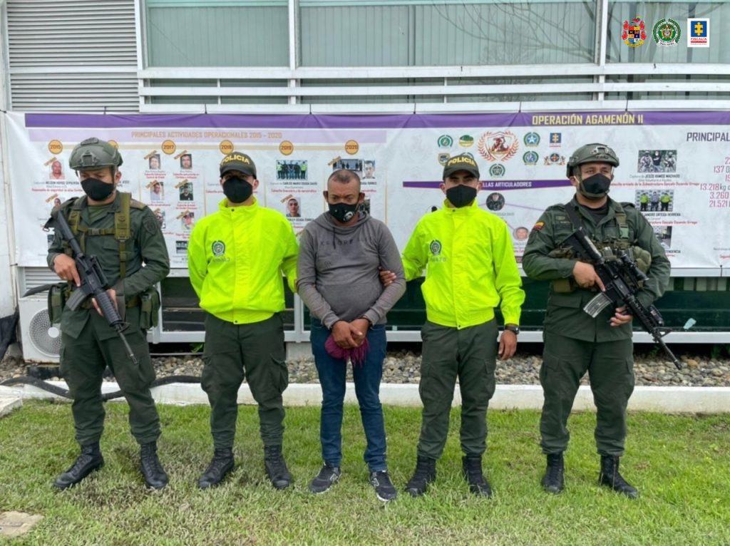 Esta persona fue capturada por personal de la Campaña Militar y Policial Agamenón II, en la Terminal de Transportes de Montería (Córdoba), en momentos en los que pretendía viajar a Sincelejo (Sucre).