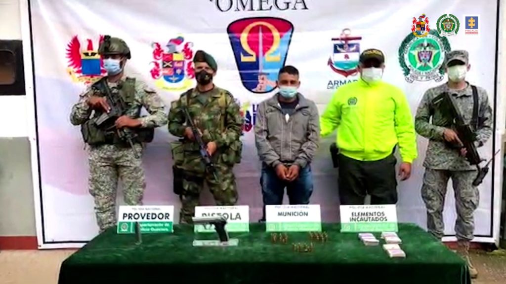 En el procedimiento se incautaron una pistola, un proveedor, municiones calibre 9mm, $15.300.000 en efectivo, una agenda con anotaciones de presuntas extorsiones y tres vales o letras de cambio con el sello de la “Unidad de Finanzas Jhon Linares del Frente Comandante Jorge Briceño de las FARC-EP”.