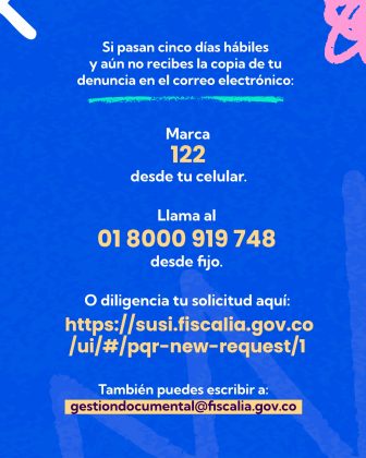 Si pasan cinco días hábiles y aún no recibes la copia de tu denuncia en el correo electrónico: