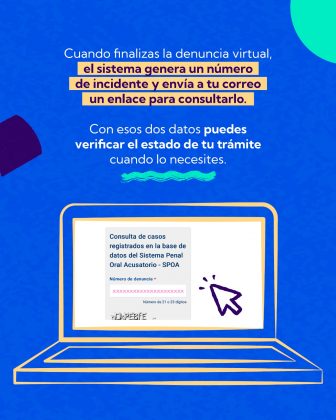 Cuando finalizas la denuncia virtual, el sistema genera un número de incidente y envía a tu correo un enlace para consultarlo.