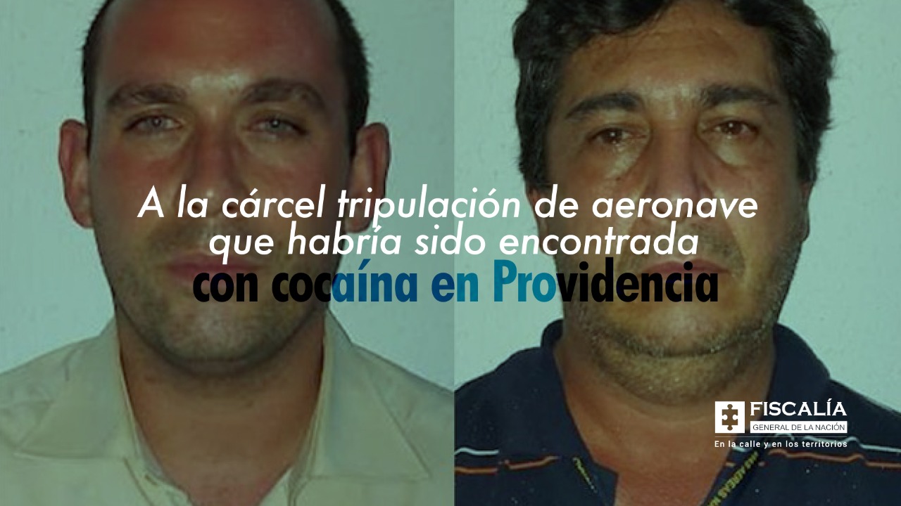 El juez promiscuo municipal de Providencia, con función de control de garantías, impuso medida de aseguramiento en centro carcelario a Juan Camilo Cadena Botero y Harold Darío Rivera Toledo, piloto y copiloto, respectivamente, de una aeronave en la que fueron encontrados 446 kilogramos de clorhidrato de cocaína y $102’752.000 en efectivo.