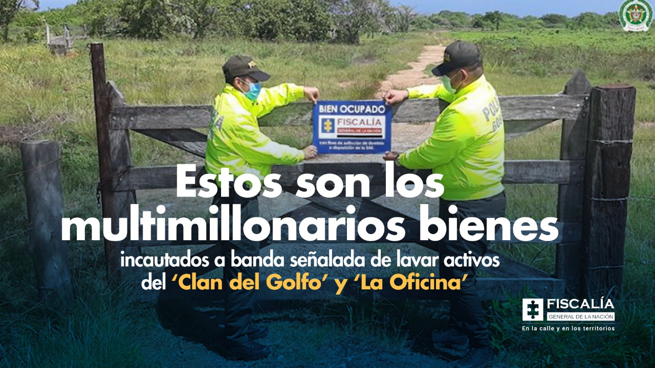En las últimas horas, la Fiscalía General de la Nación informó que mediante un operativo junto con la Policía Nacional, se logró propinar un duro golpe al patrimonio del ‘Clan del Golfo’, tras la incautación de bienes avaluados en 250.000 millones de pesos, los cuales fueron ocupados en más de cinco departamentos por la Dirección Especializada de Extinción del Derecho de Dominio y la Dirección Especializada contra el Lavado de Activos.