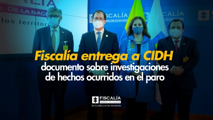 Un informe de 35 páginas, con los detalles de las investigaciones de la Fiscalía sobre hechos ocurridos en el Paro Nacional, entregó el ente acusador a la Comisión Interamericana de Derechos Humanos –CIDH- durante la reunión que sostuvieron estos organismos a lo largo de más de dos horas el lunes festivo en la mañana en Bogotá.