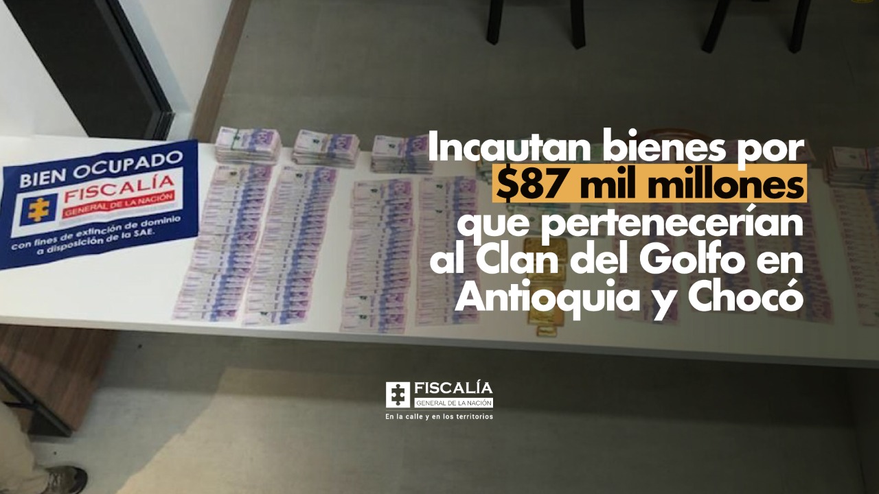La Fiscalía General informó que se llevó a cabo un gigantesco operativo que permitió el allanamiento e incautación de varios muebles e inmuebles, así mismo de sociedades adquiridas supuestamente con dineros del narcotráfico del Clan del Golfo. La incautación asciende a 87 mil millones de pesos.