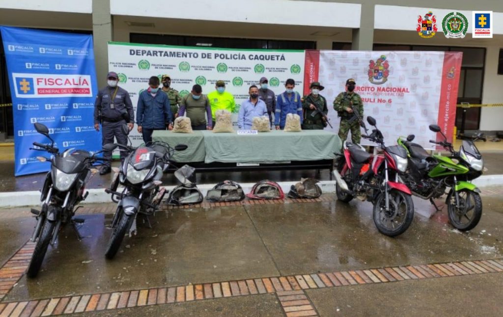 La Fiscalía General de la Nación, a través de sus investigadores del CTI Seccional Caquetá en coordinación con unidades de la Dirección Antinarcóticos de Florencia – DIRAN, lograron la judicialización de cuatro personas presuntas responsables de los delitos de tráfico de estupefacientes agravado. Los procesados fueron capturados en flagrancia, cuando al parecer transportaban 44 kilos de base de coca en los tanques de sus motocicletas.