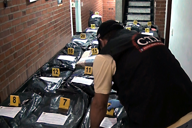 La droga, que está avaluada en 400 millones de pesos, se hallaba empacada en 27 paquetes de 50 kilos de pesos cada uno y cuatro bloques perfectamente envueltos en papel, bolsas plásticas y costal de fique. La acción del CTI se presentó en una casa del barrio Villavicencio, en Pereira (Risaralda).