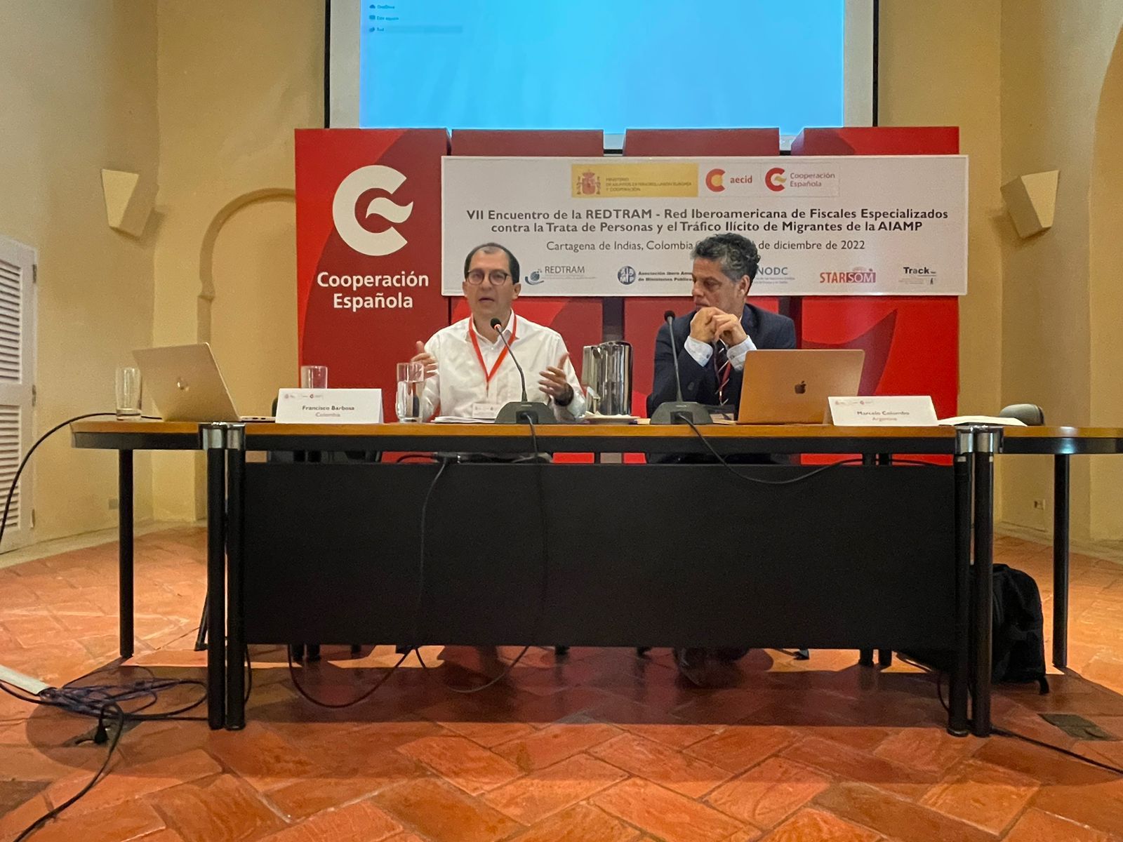 Durante el encuentro de la Red Iberoamericana de Fiscales Especializados en Trata de Personas y Tráfico Ilícito de Migrantes (REDTRAM) de la Asociación Iberoamericana de Ministerios Públicos (AIAMP), que se realiza en Cartagena (Bolívar), el Fiscal General de la Nación, Francisco Barbosa Delgado, recalcó que la acción penal debe ir acompañada de investigaciones financieras que permitan afectar el patrimonio y los activos de las organizaciones criminales involucradas en estos dos delitos.