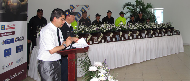 El Jefe de la Unidad Nacional de Fiscalías para la Justicia y la Paz, Juan Pablo Hinestrosa Vélez y la Embajadora de la Unión Europea, María Van Gool hicieron entrega a los familiares, los restos óseos de 15 víctimas de los grupos armados al margen de la ley.