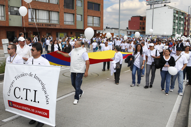En el Día Nacional de Memoria y Solidaridad de las Víctimas, el Fiscal General de la Nación, Eduardo Montealegre Lynett, y cerca de mil funcionarios de la entidad participan en la “Marcha por la Paz”, como una muestra del compromiso que tiene la institución con la paz y con las víctimas del conflicto armado.