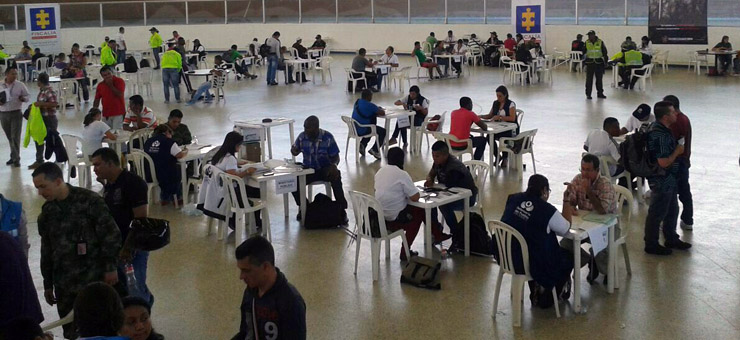 La jornada liderada por la Fiscalía General de la Nación y en la que participan la Unidad para la Atención y Reparación Integral a las Víctimas (UARIV), la Procuraduría General, la Personería, la Defensoría del Pueblo, delegados de la Presidencia de la República y miembros representantes de la Fuerzas Militares, se lleva a cabo en el Velódromo Alcides Nieto Patiño de la capital vallecaucana.