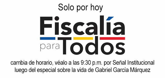 Solo por hoy Fiscalía para Todos cambia de horario, véalo a las 9:30 p.m. por Señal Institucional luego del especial sobre la vida de Gabriel García Márquez.