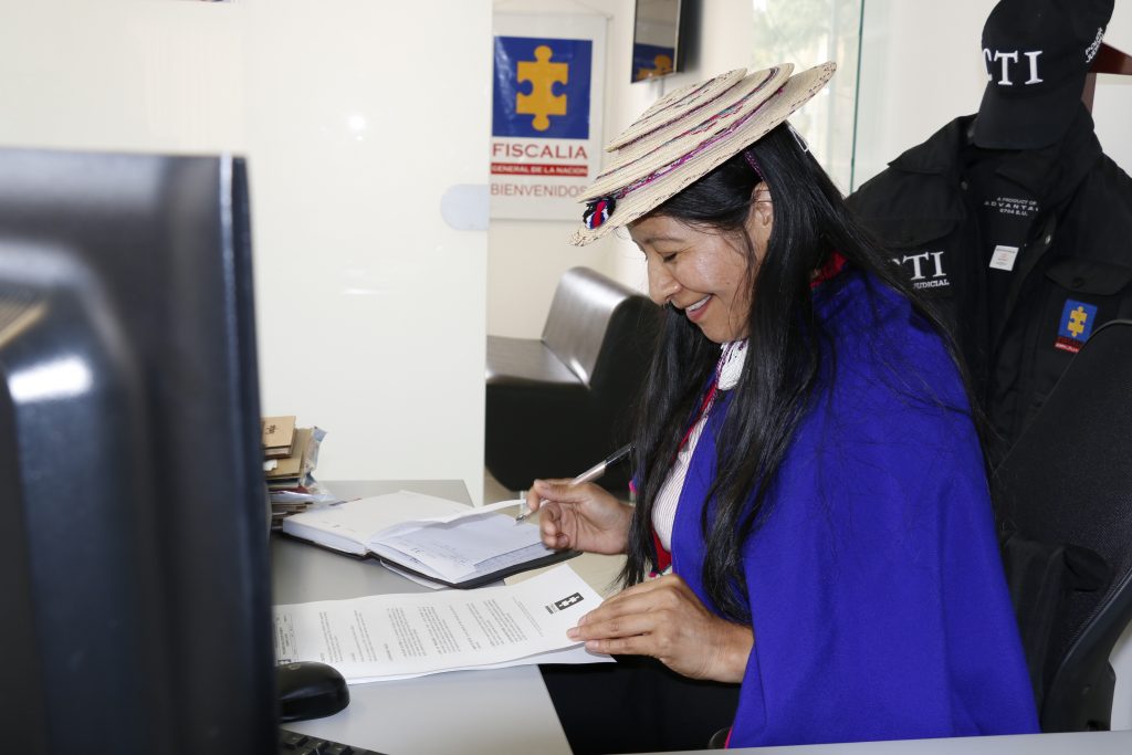 Precisamente esa cultura y conocimiento indígena han sido aprovechados por la Fiscalía. Ella, desde su cargo de asistente de fiscal, sirve como intérprete para facilitar la comunicación de indígenas Misak que son víctimas o procesados por la justicia ordinaria.