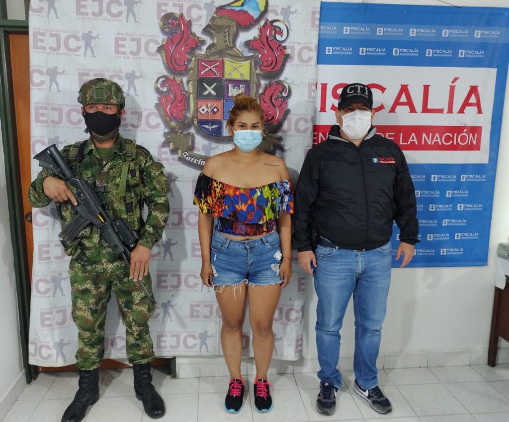 Miembros del CTI de la Fiscalía Seccional Huila, en conjunto con uniformados de la Novena Brigada del Ejército Nacional, capturaron este miércoles a Yesmi Yeleni Bohórquez Velasco, alias La Mona, presunta integrante del Grupo Armado Organizado Residual Dagoberto Ramos Frente Sexto de las disidencias de las ex FARC- EP.