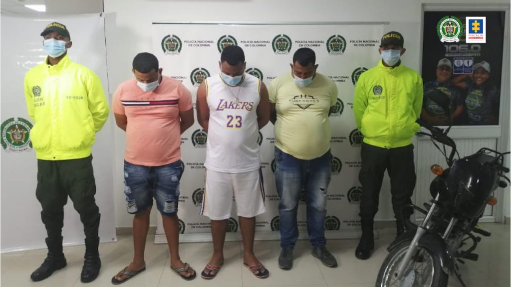 Los imputados Jesús Alberto Espitia Ventura, alias Espitia; César Augusto Salazar Madera, alias Augusto; y Jaime Miguel Díaz Canaval, alias Jaimito, fueron capturados en vía pública de Cartagena, mediante orden judicial.