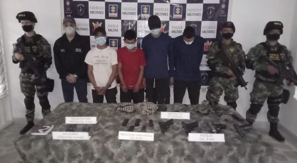 Estas personas fueron capturadas gracias a la rápida reacción de unidades del Gaula Militar Norte de Santander y del Batallón de Fuerzas Especiales Urbanas del Ejército Nacional. En el procedimiento se logró la liberación de los 22 mineros, por quienes exigían $40’000.000. Asimismo, se incautaron cuatro pistolas, proveedores, munición calibre 9 mm, armas cortopunzantes, celulares y una agenda con información de valor para las investigaciones.