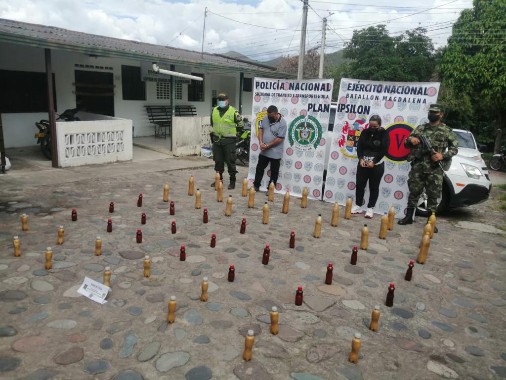 Allí fueron capturados Carlos Arturo Giraldo Narváez y Jully Castillo Carvajal, quienes fueron sorprendidos, al parecer, con 54 tarros de diferentes tamaños y en su interior una sustancia que tras ser sometida a las pruebas científicas dio positivo para cocaína, en un peso total de 47 kilogramos. La sustancia era transportada oculta en el tanque de un vehículo.